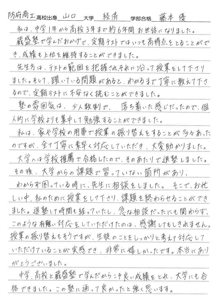 防府市の少人数制・個別指導重視の塾、蔵盛塾